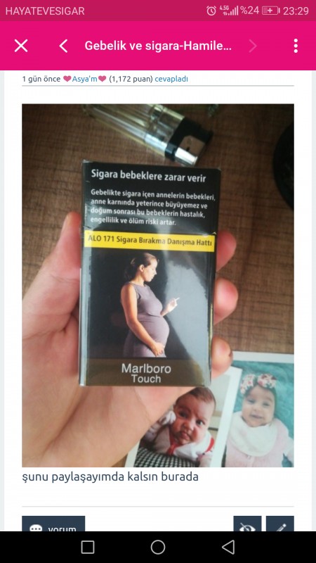 Sigaraya gelince 20 yıllık tiryaki olan ve resmen hayatımın bir parçası olan sigarayı ben bıraktıysam herkes bırakır herhalde. Söz konusu dünyaya gelmesine benim karar verdiğim bir bebeğin sağlıgı ise ve bende bundan sorumluysam, bundan daha iyi bir neden olamaz sigarayı bırakmak için....