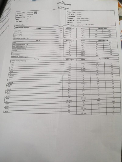 kime sorsam çok degil dusebilir dedi ne yapsam bilemiyorum glifor 850 mg kullanıyodum 1 haftadır 1000 liğe başladım..bu sabahta 98 çıktı şaşkın ve kararsızım lutfen fikirlerinizi soylermisiniz ?bu da kan sonuçlarım